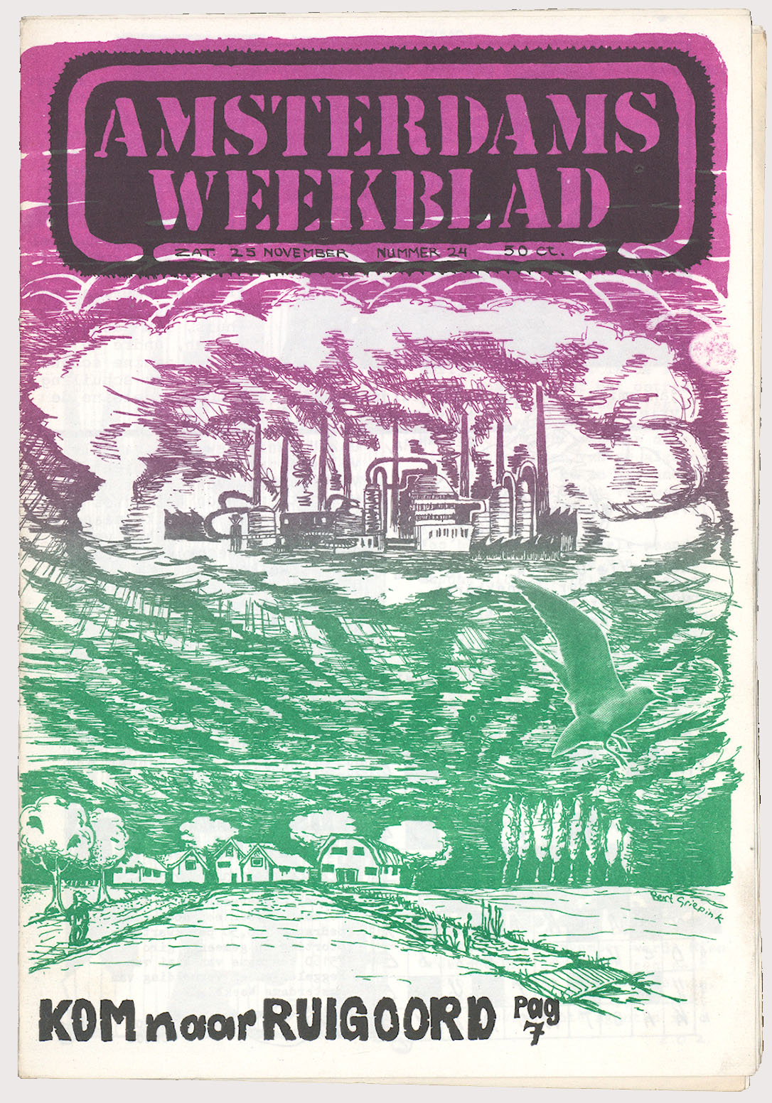 This photograph by Cor Jaring (****) is from 1971 and shows the boat ‘De Witte Raaf’ (the White Raven) moored straight opposite the local Amsterdam police station of Kattenburg, selling marihuana plants, for one guilder each. We see Kees Hoekert at the left and on the right (with a spade and ‘klompen’) Robert Jasper Grootveld. It is a playful subversive enterprise under the name “Lowland Weed Company.” At that time someone had studied the Dutch anti-opium law and had discovered that it banned only explicitly the dried leaves of this plant. Growing plants were not subject to this law and it is through this loophole in the jurisdiction that the wide use of this soft-drug and the soft drug tolerance policy of Dutch authorities came into existence. Grootveld who had been active as an anti-smoke-magician fighting the big Tobacco industry in his own unique ways (because of cancer danger of regular cigarets) had been using and propagating marihuana (instead) from early on. It is at the end of the sixties and the very beginning of the seventies, with the influx of hippies and other young people traveling around cheaply by hitchhiking, that a new form of tourism started to develop in Amsterdam. At first the young people often slept outdoors on the steps of the National Monument at the Dam Square and in the Vondelpark. Outdoor sleeping was soon regulated by limiting the permitted areas and providing cheap accommodation called ‘sleep-inns’, a kind of hip youth hostels, that often provide some cultural program at the side. Youth clubs came into existence, some of them squatted at first but soon legalized, others initiated by the city government who tried to get the youngsters of the street by offering them music and dancing halls. Local cannabis production (nederwiet) was sold in small quantities in these venues. The whole multi-million recreational drug industry originates in this chain of sub-cultural events.