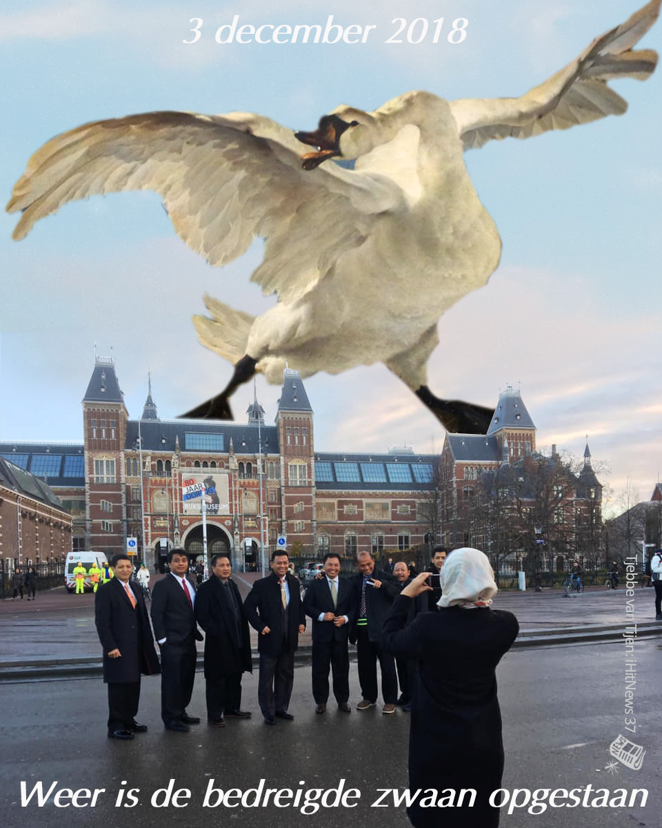 WEER IS DE BEDREIGDE ZWAAN OPGESTAAN – Amsterdam 3 december 2018 prent bij de verwijdering van de “I amSTERDAM” letters op het Museumplein