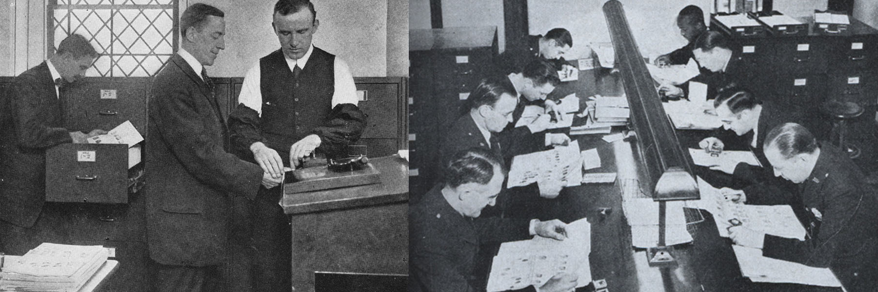 (*) Popular mechanics 1934 on fingerprints: Signatures can be forged, but not a fingerprint. To speed up the search for a particular set of fingerprints, a system of classifying them by certain whorls, lines and other marks has been evolved. In a recent test, the exact record of an unidentified person’s fingerprints was located within three minutes in a file containing more than 1,500,000 records. The New York city police department has been collecting citizens’ fingerprints for several years. Between 15,000 and 20,000 persons volunteer each month. Other cities are taking up the work. The Department of Justice in Washington is the clearing house for most fingerprints. The master criminal file contains 5,000,000 records. The civilian file will be separate. Instead of a stigma, the record will be a form of personal protection.