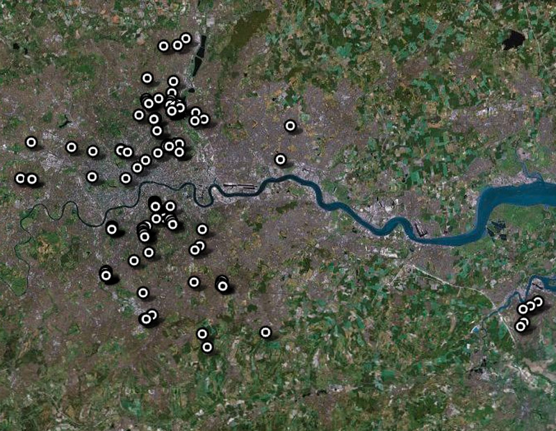 Overview zoom from interactive GoogleMap on the 2011 summer riots by The Guardian as published 9. August 2011; the central parts of London are hardly effected.