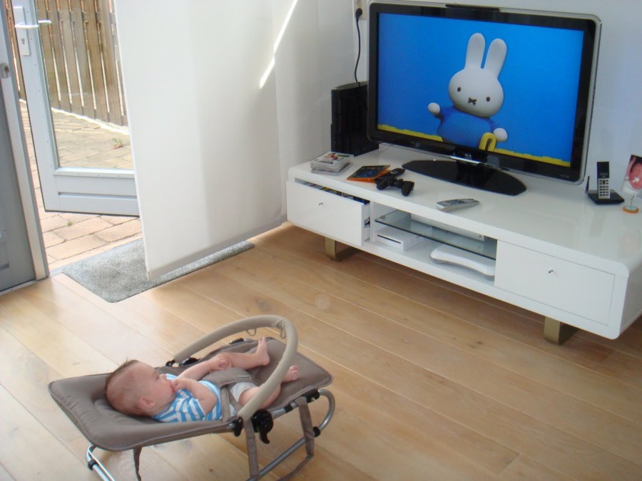 *) source of strapped in kid in front of Nijntje on television screen = http://klausener.nl/fotos/nijntje-is-de-bom/