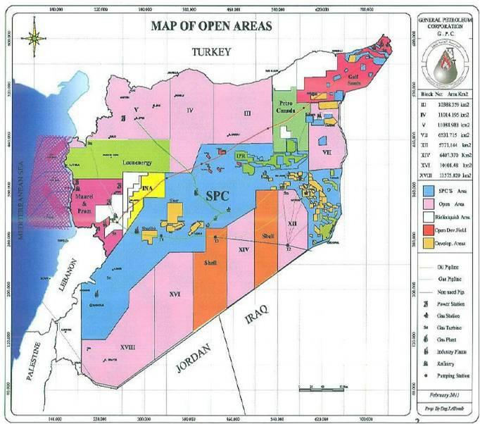 SYRIAN OIL AND GAS NEWS: Announcement for International Offshore Bid Round 2011 Category: Oil Ministry Decisions & Declarations | Posted on: 30-03-2011 The Ministry of Petroleum and Mineral Resources and General Petroleum Corporation (GPC) invite international petroleum companies for an International Bid Round to explore, develop and produce petroleum from three offshore blocks in some areas of the territorial waters and the exclusive economic zone of the Syrian Arab Republic in the Mediterranean Sea according to the production sharing contract.The announcment contains three marine areas ( block I, block II, blockIII) with covarage area estemated by 3000 cubic kilometers per one block. the annoncement date starts in 24/3/2011 for six monthes and closed on 5/10/2011.The modern American studies recently confirmed the discovery of treasure, a huge oil and gas in the basin of the Mediterranean is estimated reserves to 122 trillion cubic feet of natural gas and 107 billion barrels of oil. (4)