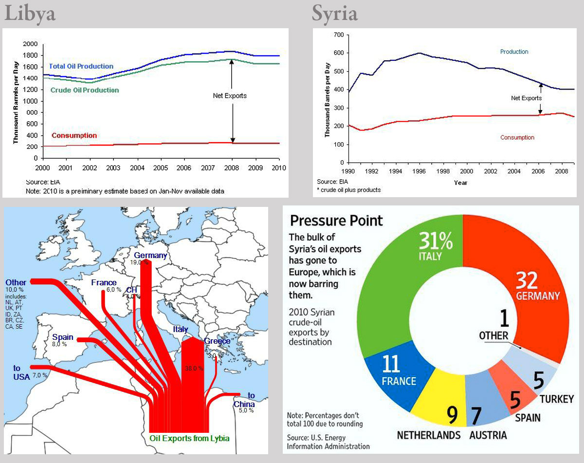 The backdrop of the policy for Libya and Syria by European Union and associated NATO countries is always painted with oil. (1) British/Dutch Royal Dutch Shell, French Total,  CNPC from China and ONGC of India are main investors in Syrian crude oil and gas. (2)