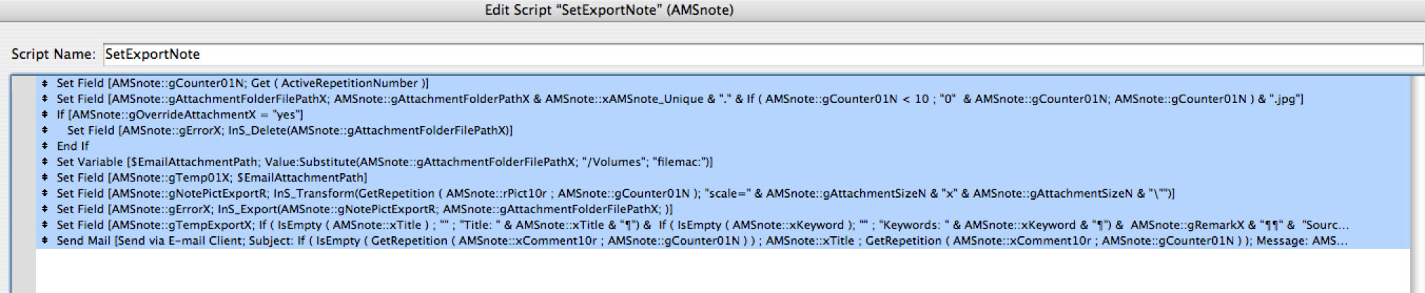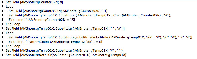 A stupid thing with Filemaker is that you can noy expirt a script as text (uinless you buy somewhere a special plugin for that); so I made a screenshopt for those who are desperate enough to see the code, instead of having it explained in writing about it. So clisk picture to see it full size; also the code viewer does NOT have a soft wrap function so you need either a big screen or you have to pan the screen shot across…