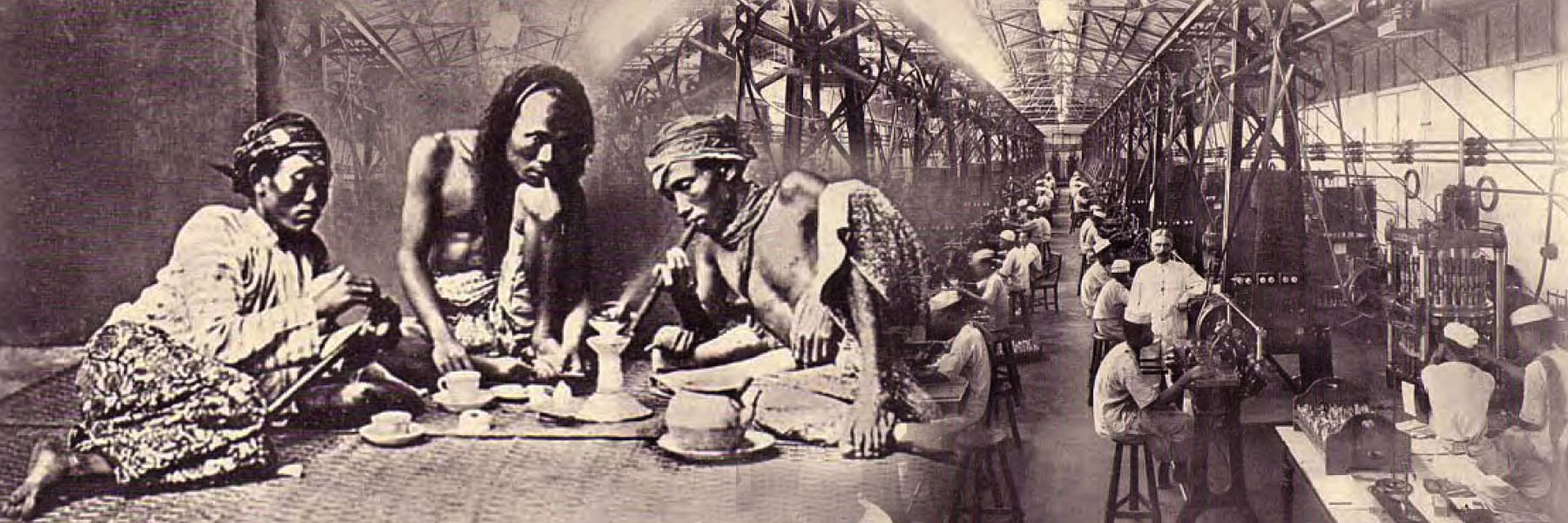 Natives smoking opium in Batavia (Djakarta) 1925 and a view of the Dutch Jl. Salemba opium factory in Batavia, 1925 with machines for mechanical filling of tubes with opium. The opium production and trade was a Dutch state monopoly starting in 1827 in the East Indies and lasting till 1942.